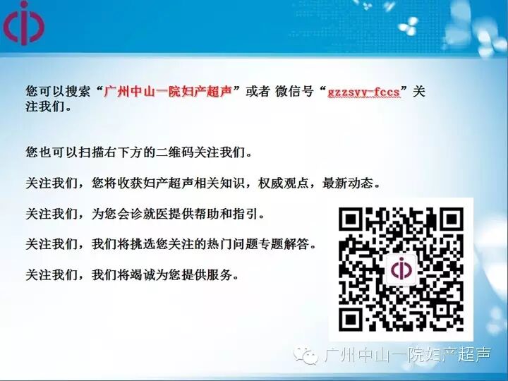 结束语:怀孕是每位女性一生当中需要经历的神圣时期,产前超声诊断愿意为各位准妈妈们保驾护航,五次超声检查,侧重点各有不同,如果是有问题的胎儿,根据问题的严重程度,需要适当增加检查的次数。产前超声医生是生命的第一位质检员,我们中山大学附属第一医院妇产超声全体人员随时准备为您服务。