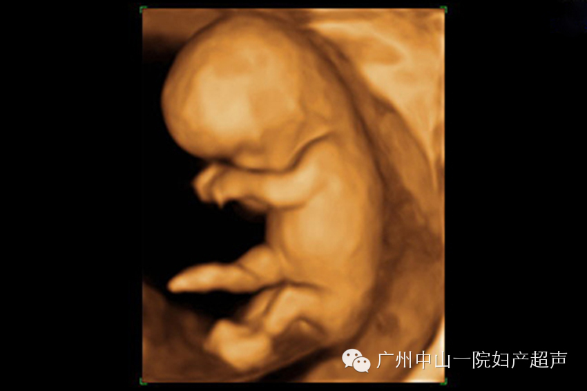 这个时期,宝宝已经初见人形,头部躯干四肢可以分辨出来了,也可以看到宝宝的活动,但是由于宝宝的神经系统高级调控机制仍然没有发育成熟,所以宝宝的活动是像触电一般的全身低级电生理反射活动。但是准妈妈通常在这个时期还无法感知到胎动,只能通过超声观察。运用三维超声可以给宝宝照一张全身照,满足妈妈们的好奇心。