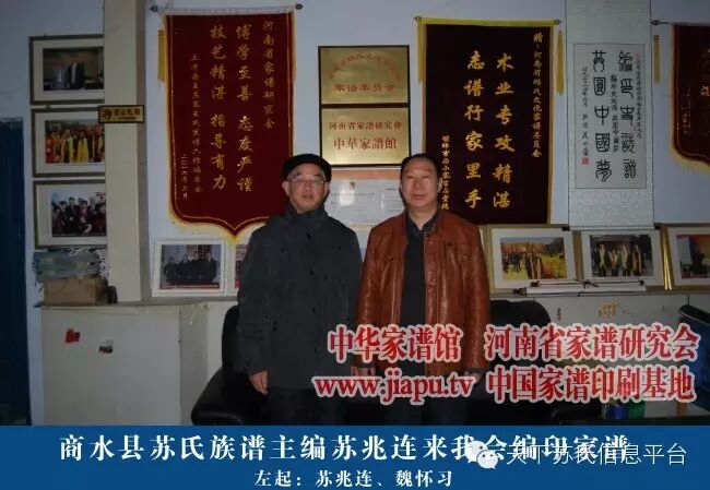 2015年1月7日上午,河南省周口市商水县苏氏族谱主编苏兆连先生专程来我会考察,魏怀习会长、金涛副会长等驻会领导热情接待了客人,宾主双方在友好的氛围里就如何编印好苏氏家谱进行了深入的交流。