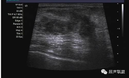 谐波成像是利用探头超声波的二次谐波成像。该技术可有效地抑制超声混响效应及其它近场噪声,但可能会限制穿透深度而导致分辨率下降,除非运用更新的宽带谐波成像技术。如图3所示液态肿块的内部回声在谐波影像中有所下降。