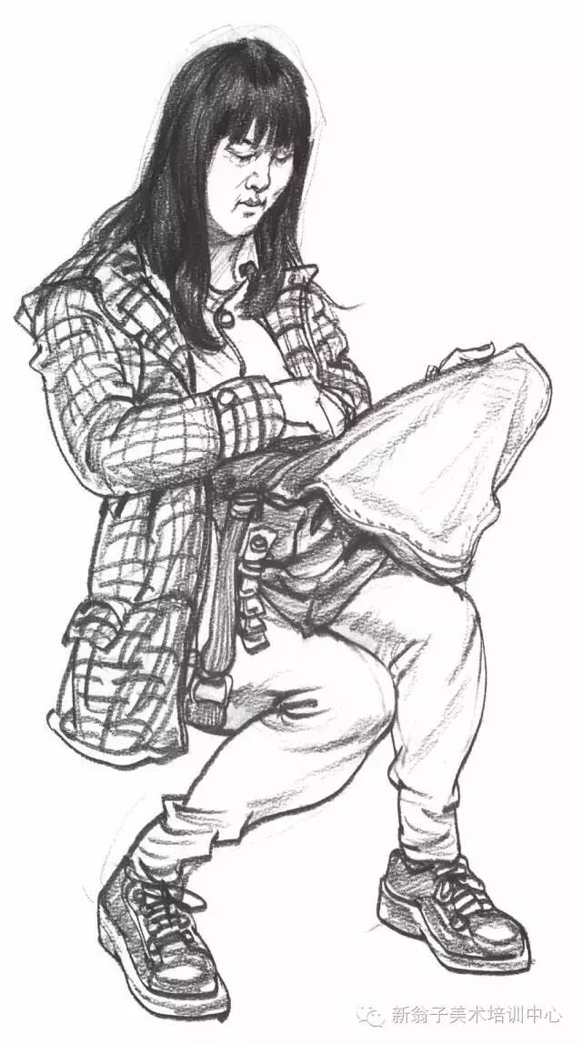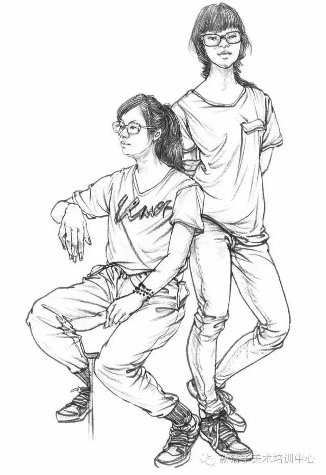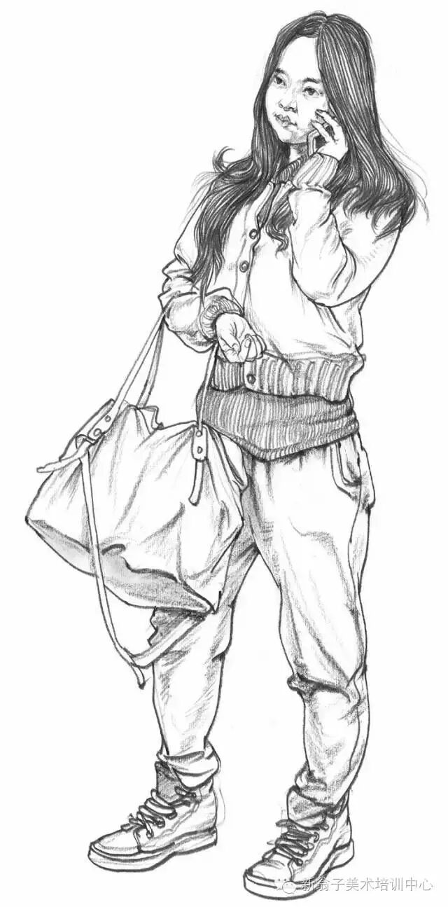 1、 剪影观察法,保障了形的准确性。“剪影观察重外形”当你看模特看到的不是“人”而是“剪影”(轮廓形)时,你会发现怎么画形都是准的。