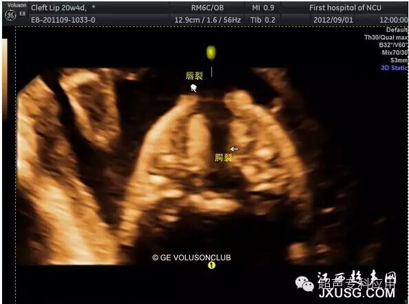 胎儿唇腭裂三维容积对比成像重建显示上腭
