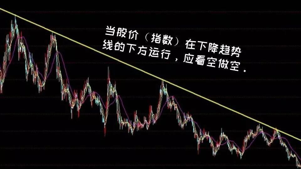 如果股价或指数一直保持在下降趋势线的下方运行,即使有反弹,反弹力度不能攻克下降趋势线的压制,应该尽量以看空做空为主。对于喜欢做超级短线的投资者来说,在下降趋势线的下方抢反弹也要格外谨慎,快进快出,万万不可恋战,所谓“大势不妙,久战必套”。