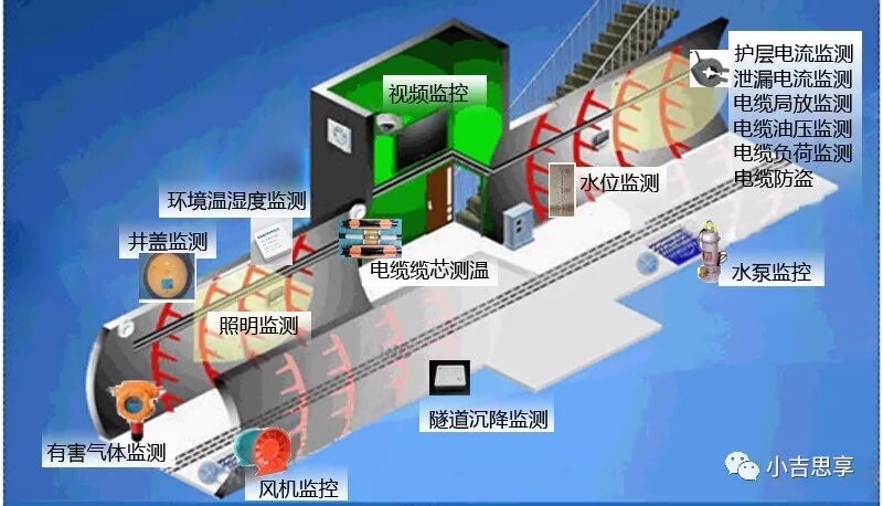 电力隧道环境监测:温湿度、有害气体含量、空气含氧量、隧道内烟雾探测;