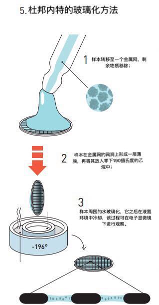 上世纪80年代,杜博歇发明了迅速将液体水冷冻成玻璃态以使生物分子保持自然形态的技术。通俗地说,生物细胞内的水一旦冷冻就会结冰,而这些冰晶会破坏细胞内各种物质的原有形态。让这些水变成玻璃态,就能让细胞内的各种分子保持原样,供电子显微镜观察。
