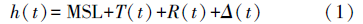 式中,MSL 为当地长期平均海面在验潮零点上的垂直高度;T(t)为天文潮位;Δ(t)为观测误差;R(t)为余水位。