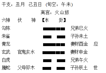 (10)假设子水为用神,在酉月辰日占卜,子水得酉月相生显旺,辰土虽是水爻之墓,但由于在吉凶判断层面,生旺墓绝具有“从于卦理”的特征,因为辰土同时存在克水爻的关系,所以与子水于辰日不能论墓,只能论受克衰相,子水于日月组合一衰一旺,总体为平相。类似的还有金爻遇丑日,吉凶层面上只能论土生金,而不能论丑墓金;只有墓的同时有又不存在生克关系的日令,对爻而言才叫墓,如木爻遇未日,或火爻遇戌日等。如占妻子考研能过否,得“火山旅”卦