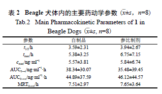 综上所述,自制品与参比制剂的体外释放基本一致,在Beagle 犬体内主要药动学参数统计学无差异,说明自制品小试较为成功,可为今后自制品处方工艺的放大研究和人体生物等效性试验提供参考。