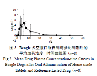 8 只Beagle 犬口服1 自制与参比制剂后,均未观察到异常反应,其平均血药浓度- 时间曲线,见图3。