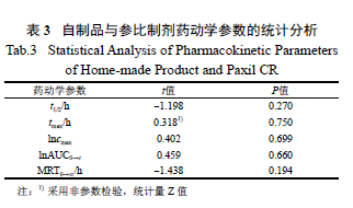 关键词:盐酸帕罗西汀;肠溶缓释片;体外释放;相似评价;药动学