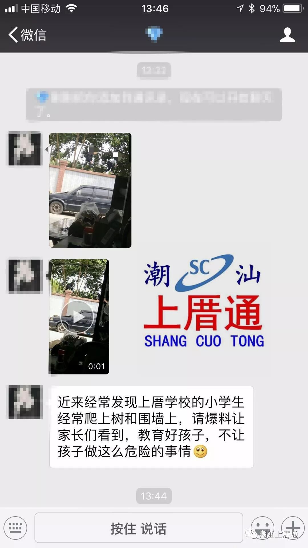 网友报料:今天(11月5日)汕头市潮南区胪岗镇上厝社区,上厝学校近来经常发现小孩爬上厝学校校墙攀上树,年龄大概在8-15岁左右,非常危险!按网友报料的视频看有大概5人左右,爬上学校围墙在上面走来走去,其中也有外校学生,有本地也有外地小孩,(俗话说:教仔淼溪,骂仔爬树)请家长警惕教导孩子们:什么可为之、什么不可为之!同时也希望引起有关单位重视,及时出来制止,不要等到发生严重事故,人员伤亡就迟了、晚了......