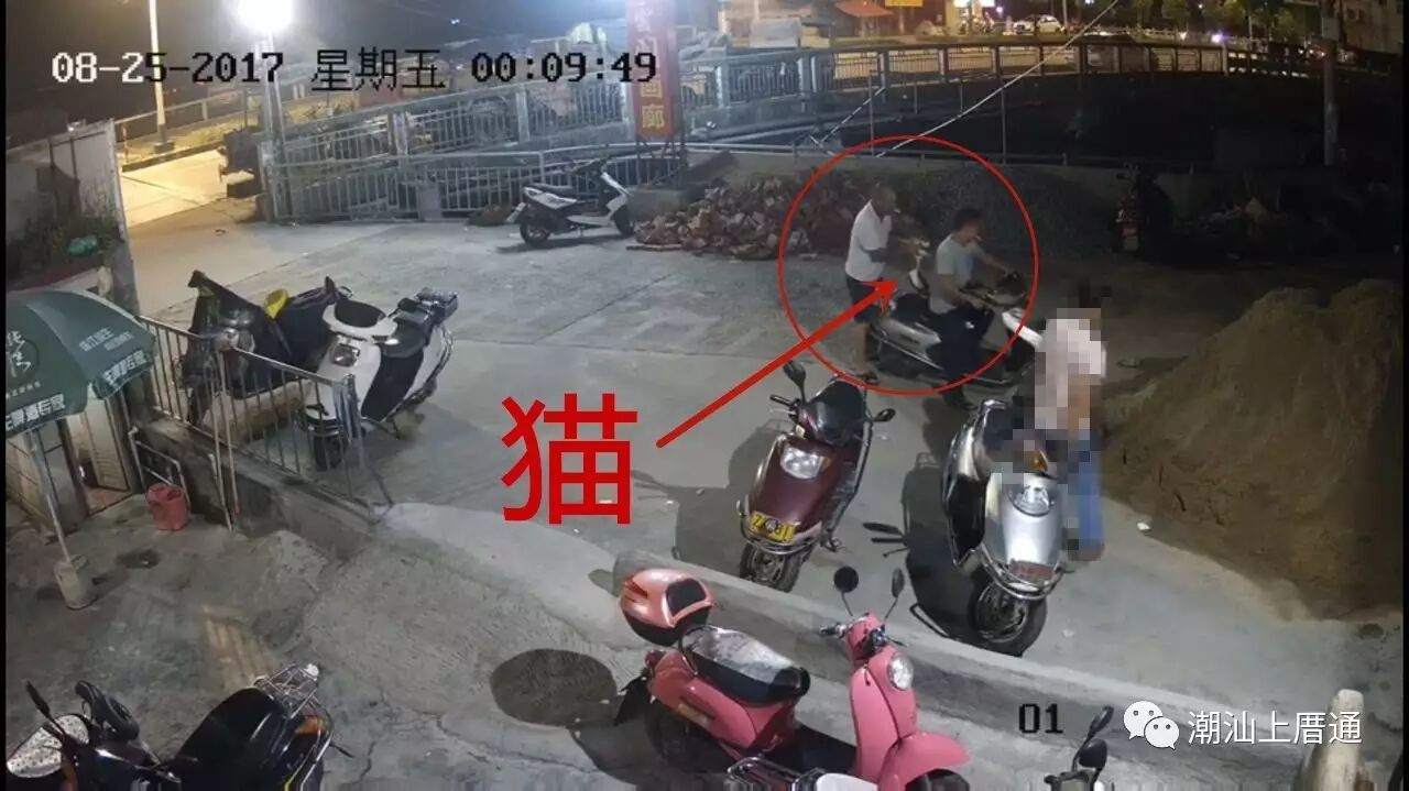 网友报料:昨天凌晨0点9分左右,汕头市潮南区胪岗镇上厝社区一夜点大排档被两位食客“顺手牵羊”偷了一只猫!