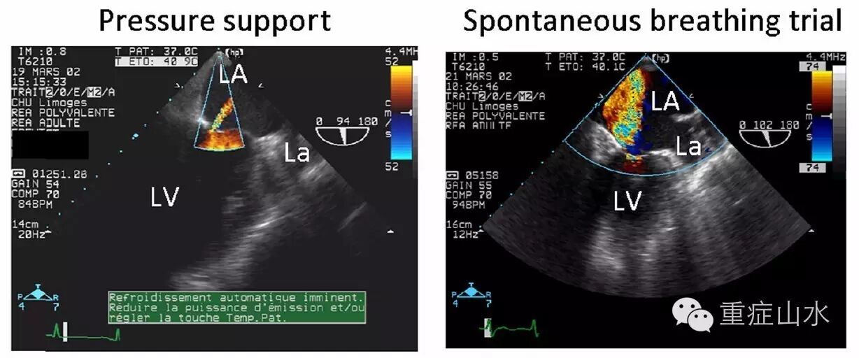 脱机失败的患者表现为,相比较SBT之前— LVEF↓和LV充盈压↑[41, 42]。