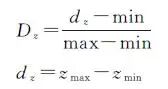 式中,dz为邻域v内高差;zmax与zmin为邻域v内最高点与最低点的z坐标,min与max为点云中高差dz的最小值与最大值。