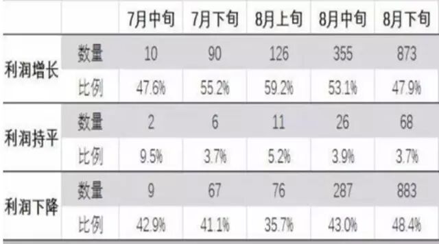 通常来说,认为定期报告披露时间早的公司业绩都比较好,这个现象在年报披露的时候比较突出,但半年报披露的时候这个规律并不太明显。从表里可以看出,在7月上旬最早披露的21家公司里面,利润下降的几乎占了一半;7月份披露的公司,利润增长的占比并不比8月中上旬高,看不出早披露的公司业绩好这个现象,能够观察到的是8月最后一周披露的公司里面业绩差的比较多。所以,知道自己公司什么时候披露财报就好,除了赶在8月末最后几天披露的公司要小心一下以外,其他时间披露的时间点并没太大关系。