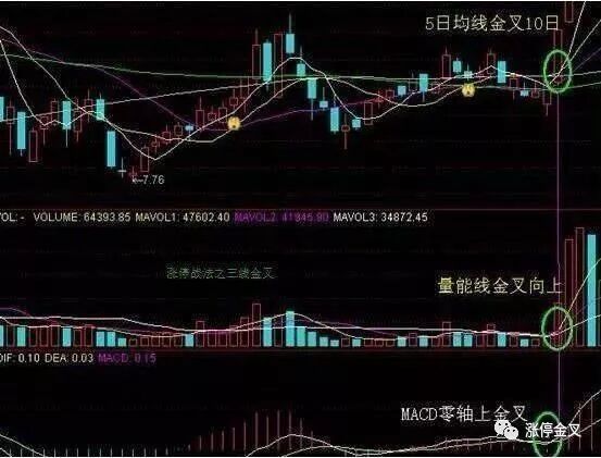 三线金叉指的是均价线、均量线、MACD。三者发出金叉信号。三者同时发出的金叉信号是非常强烈的买入信号。一买就涨!在技术分析中“价、量、时、空”这四大要素中有三个发出了买入信号,极大提高研判准确性的概率。一旦出现三线金叉形态,买入就能享受到快速拉升的机会。