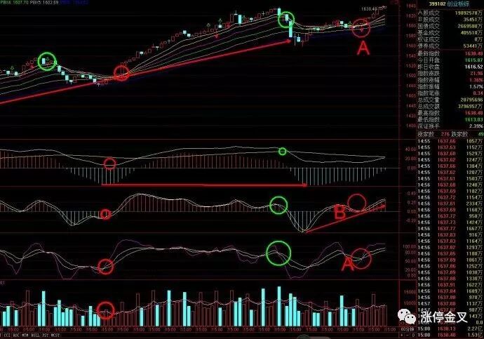 虽然反弹还在继续,并逼近前高,但需要注意的是MACD依然离金叉还差一步,在MACD实现金叉前还存在变数,创业板在逼近前高时,尾盘缩量,提防冲高后跳水走势。
