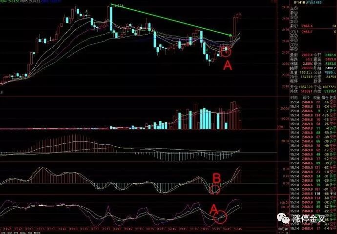 从图中看出,KDJ和CJDX均进入金叉状态,而且CJDX短线显示的是底背离金叉,创业板CJDX指标在回调到0轴时再次向上金叉,期货指数昨天显示的30分钟即将死叉趋势已经化解,并突破下降趋势线。