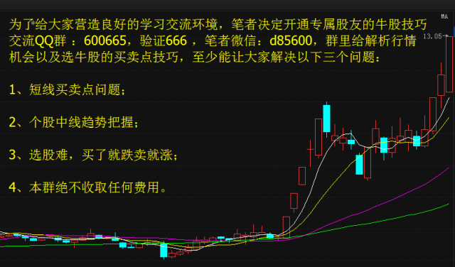 笔者通过运用中线主力控盘战法,精准捕捉涨停大牛股,如果你在股市没赚到钱,绝对是因为你没有一套好的方法。其实只要有了好方法,在股市赚钱是件很轻松的事!我花了10年的时间,总结了一套筛选涨停股的方法,我称之为《三把斧选股神奇战法》,精准率最高达84%以上,那么你如果对股市行情模糊,对自己的个股存在问题,可以来找笔者,欢迎关注我的微信号【d85600】。相信我的实力!而且不收任何费用!