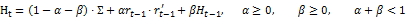 BEKK模型直接对协方差矩阵建模,假设满足如下递归形式: