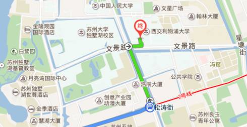 路线一:地铁2号线:苏州火车站上车(桑岛田方向)→松涛街3号口下车→118或120东线:松涛街创苑路上车→苏大公寓南区下车。