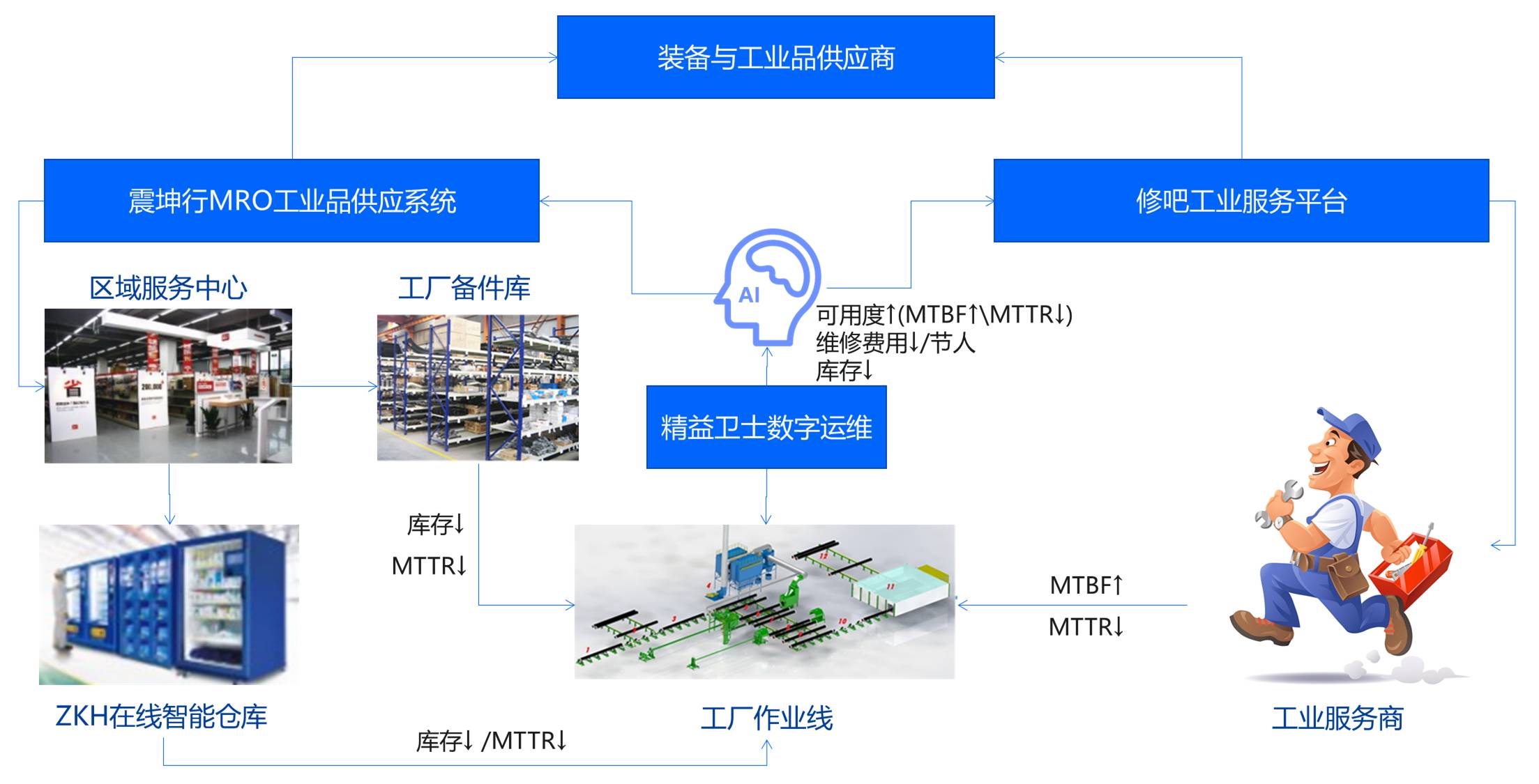 基于“开放,共享”的合作理念,提出MRO领域的透明化、扁平化、智能化,运用“互联网+智能仓储”的方式,提升制造业的销售和采购效率,降低工业品的采购和管理总成本。