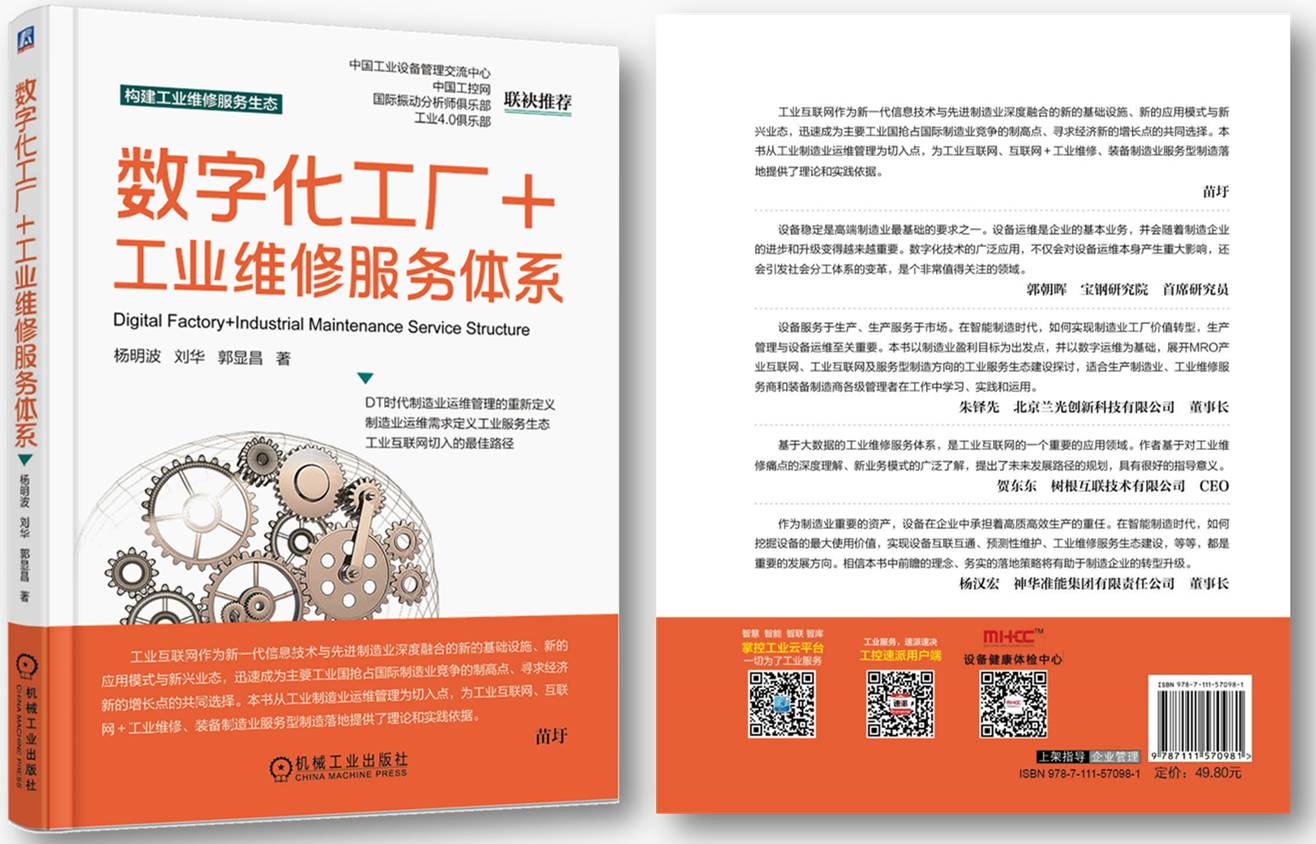 杨明波,刘华,郭显昌.数字化工厂+工业维修服务体系[M]. 北京:机械工业出版社,2017.