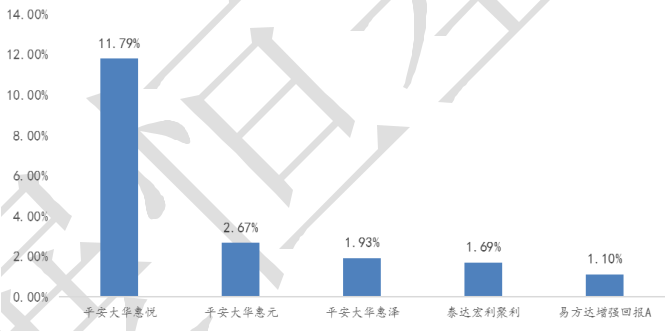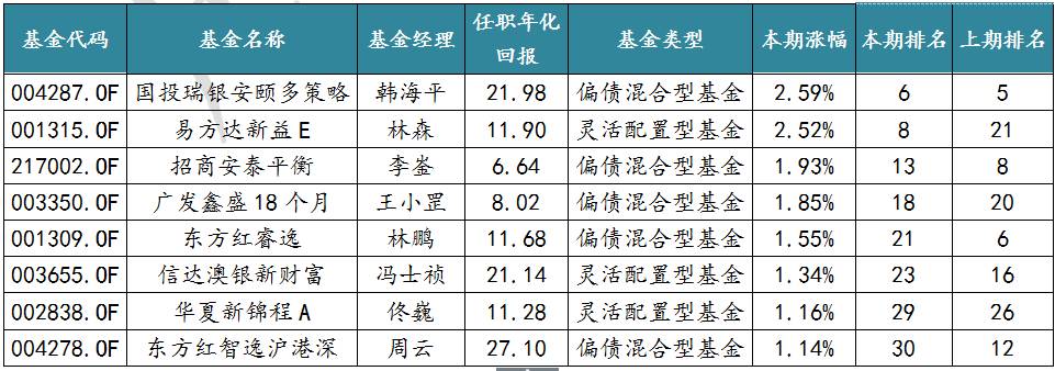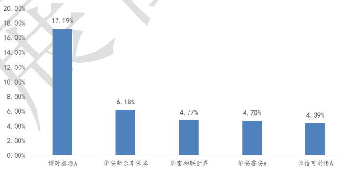 债市格局偏弱。中长期纯债型、短期纯债型、混合债券型一级基金、被动指数型中收益TOP5基金如图3,平安大华旗下的三只基金均为中长期纯债型,成立时间较晚,这三只基金和泰达宏利聚利疑似有大额赎回异动,今后还需对其进一步关注。泰达宏利聚利重仓可转债,上周中证转债结束了连续三周的下跌,上涨1.20%;易方达增强回报重仓高信用等级企业债,且为展恒优选50的重推债基。