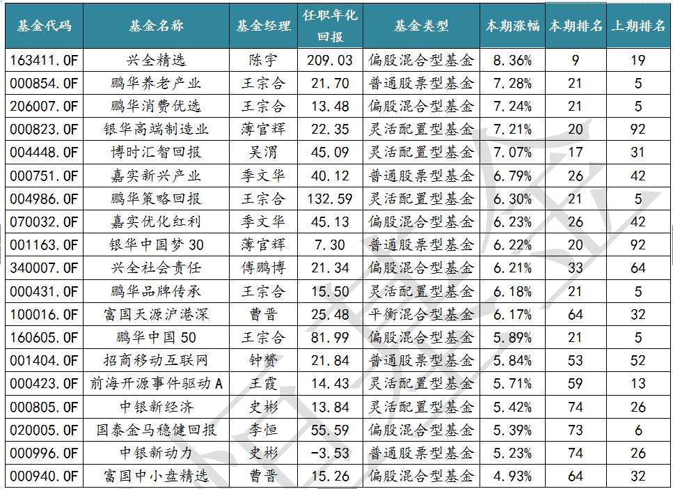 统计每位基金经理所管理基金的平均收益,近三期排名均处于前100名的基金经理为: