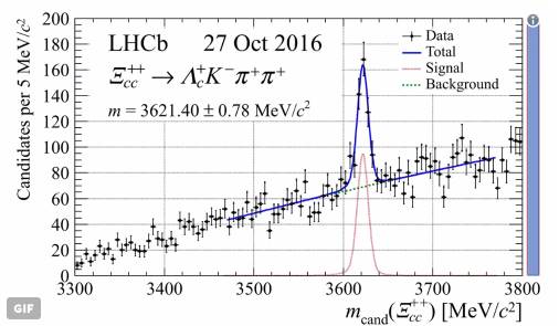 按照夸克模型的分类,重子由三个夸克组成,质子和中子是最广为人知的重子。理论很早就预测,重子家族中存在这种双粲粒子,而物理学家却在此前试验中苦苦寻找了多年。根据测量,新粒子的质量为3921 MeV,比我们熟悉的质子重四倍,这正是由于该粒子含有两个粲夸克所造成的。