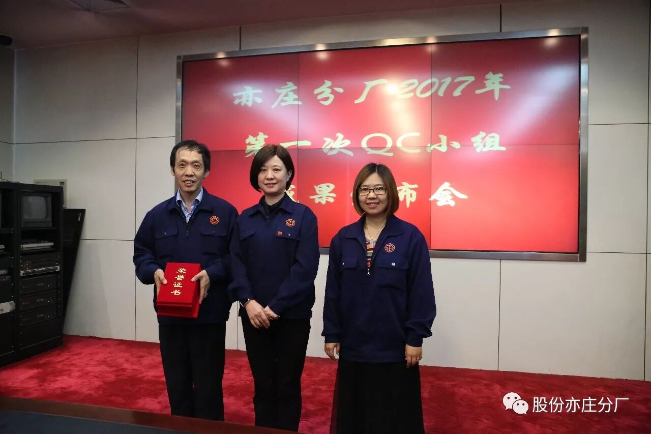 近日,股份集团亦庄分厂举办了“亦庄分厂2017年第一次QC小组成果发布会”。