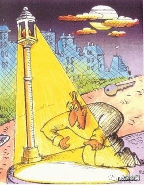一天晚上,一个醉汉在路灯下不停地转来转去,警察就问他在找什么。醉汉说,我的钥匙丢了。于是,警察帮他一起找,结果路灯周围找了几遍都没找到。于是警察就问,你确信你的钥匙是丢到这儿吗?醉汉说,不确信啊,我压根就不知道我的钥匙丢到哪儿。警察怒从心中来,问,那你到这里来找什么?醉汉振振有辞:因为只有这里有光线啊!