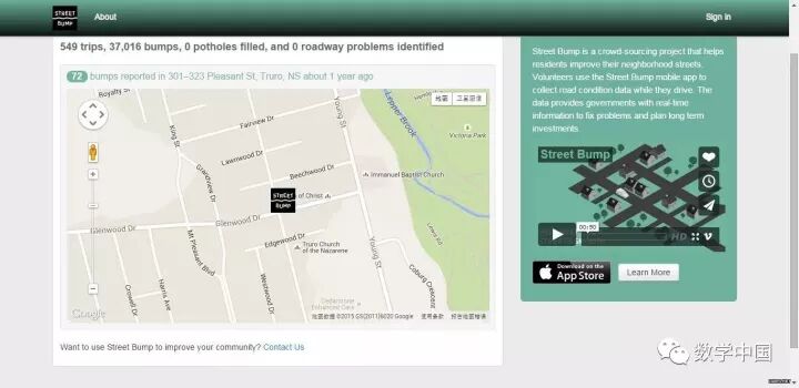 波士顿市政府推荐自己的市民,使用一款智能手机应用——“颠簸的街道(Street Bump,网站访问链接:http://www.streetbump.org/)”。这个应用程序,可利用智能手机中内置的加速度传感器,来检查出街道上的坑洼之处——在路面平稳的地方,传感器加速度值小,而在坑坑洼洼的地方,传感器加速度值就大。热心的波士顿市民们,只要下载并使用这个应用程序后,开着车、带着手机,他们就是一名义务的、兼职的市政工人,这样就可以轻易做到“全民皆市政”。市政厅全职的工作人员就无需亲自巡查道路,而是打开电脑,就能一目了然的看到哪些道路损坏严重,哪里需要维修,如图3所示。
