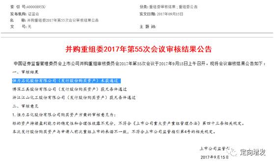 导读 2017年9月15日上午,证监会并购重组委召开了今年的第55次会议,审核结果显示,恒力股份(600346.SH)发行股份购买资产并配套融资方案被否,该方案涉及115亿收购两家子公司股权,并定增配融115亿。有意思的是,就在上会前,媒体和网络接连出现公开质疑信息。