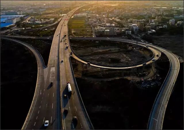 从艺术美感的角度出发,宜选择整洁、有艺术线条的建筑、草地、水面,高架公路作为前景,尽量把杂乱的场景避开或者放在远处,也可以利用光影的特殊性对其进行掩盖。