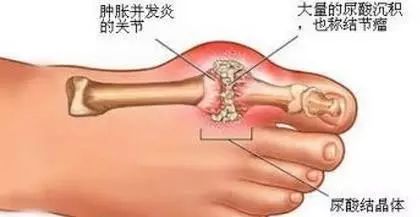 痛风多见于中年男性,女性仅占5%,主要是绝经后女性,痛风发生有年轻化趋势。痛风的自然病程可分为四期,即无症状高尿酸血症期、急性期、间歇期、慢性期。临床表现如下: