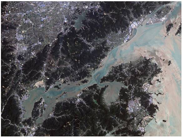 海洋水色遥感是利用卫星传感器获得的海洋表层水体光谱信息来研究海洋现象或海洋过程的新兴技术。海洋浮游植物的叶绿素、无机悬浮物和有机黄色物质是决定水色的三要素,而水色遥感技术的原理是通过卫星传感器接收的信号来反演水体中影响光学性质的组分浓度,进而探测海洋上层物质成分的组成。所以,水色遥感在海洋初级生产力估算、海洋生态环境监测、海洋动力学研究、海洋渔业开发和管理服务等方面都具有重要意义。