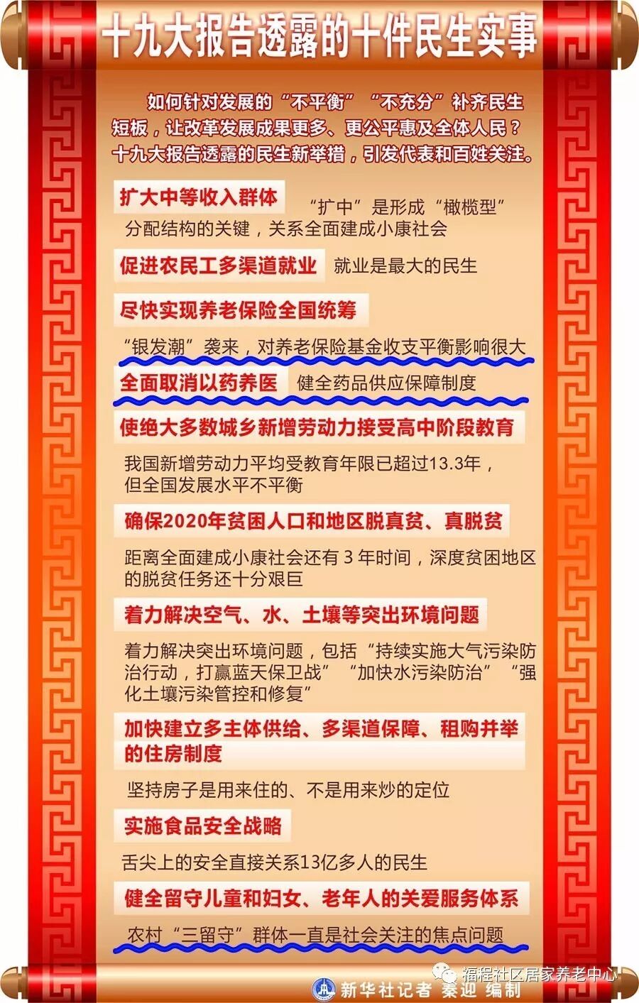“要在幼有所育、学有所教、劳有所得、病有所医、老有所养、住有所居、弱有所扶上不断取得新进展,保证全体人民在共建共享发展中有更多获得感。”