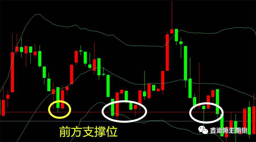 与压力位相反的就是支撑位了,也就是汇价下跌时遇到的市场支撑,当遇到支撑时汇价同样会开始犹豫不觉,就好像触碰到地板一样,无法立马突破支撑位,甚至可能下一分钟就出现了反弹。其实原理跟压力位一样,当汇价前期走到同样的位置时,没有突破市场低位而反弹,因此市场的交易者产生了心理预期,交易者对这个价位产生了信心,所以会在汇价达到这个价位时买入做多,当市场上越多人在此处买入时,汇价自然而然就会反弹了。
