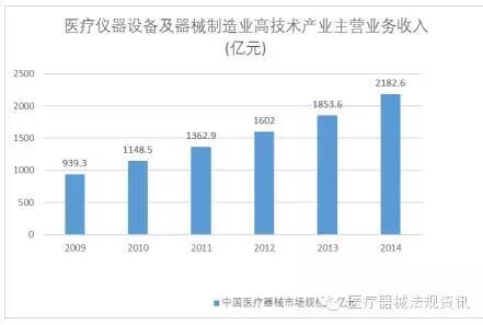 改革开放以来,中国医疗器械产业高速发展。2009 年至2014年,中国医疗器械制造业高技术产业整体规模增长了2.32 倍,年复合增长率为18.36%。