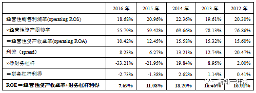 2. 经营性资产周转率呈下滑态势,2015年下降幅度达到10个百分点,2016年进一步下降,反映出新投资的盈利能力不足造成公司为股东创造价值的能力下降。这一结论也与传统ROE方法的分析结果相似。