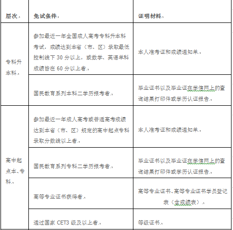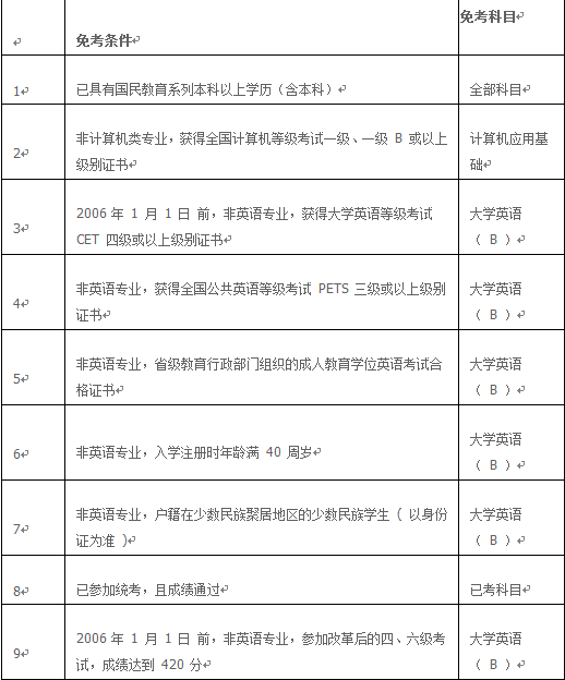 ◆试点高校网络教育公共基础课统一考试课程免考条件及免考科目