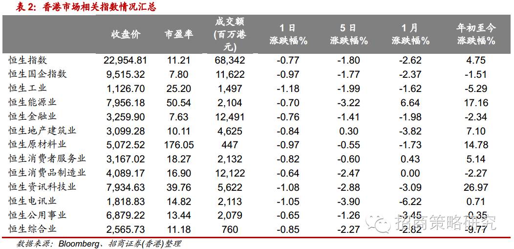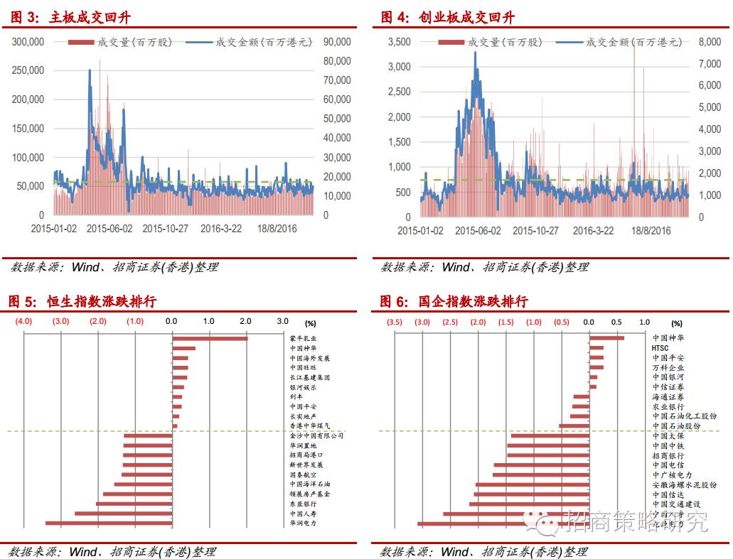 美国股市小幅下跌。油价小幅上涨,美债收益率创五个月新高。英国三季度GDP超预期,官员称“几乎没有证据显示退欧公投对经济有明显的影响”。中间价报6.7858,创2010年9月来。恒指今日低开后继续走低。截至收盘,恒生指数收报22,954.81点,下跌177.54点或0.77%;恒生国企指数收报9,515.32点,下跌93.59点或0.97%。大市成交683.42亿港元,较前日回升。恒生行业指数全数下跌,工业领跌,消费品制造业跌幅较小。建行(00939.HK)首九月净利润按年增1.19%,减值准备对不良贷款比率跌至148.78%,股价下跌。工行(01398.HK)、交行(03328.HK)今日将公布业绩,股价均走低。中国平安(02318.HK)首九个月净利润按年增17.1%,股价逆市上升;国寿(02628.HK)首九个月纯利按年跌60%,股价下跌。纽约期油在50美元以下反复,中海油(00883.HK),中海油服(02883.HK),安东油服(03337.HK)等均下跌。电力股表现较差,华润电力(00836.HK),龙源电力(00916.HK)分别为表现最差蓝筹及国指成份股。蒙牛乳业(02319.HK),神华(01088.HK)领涨指数。