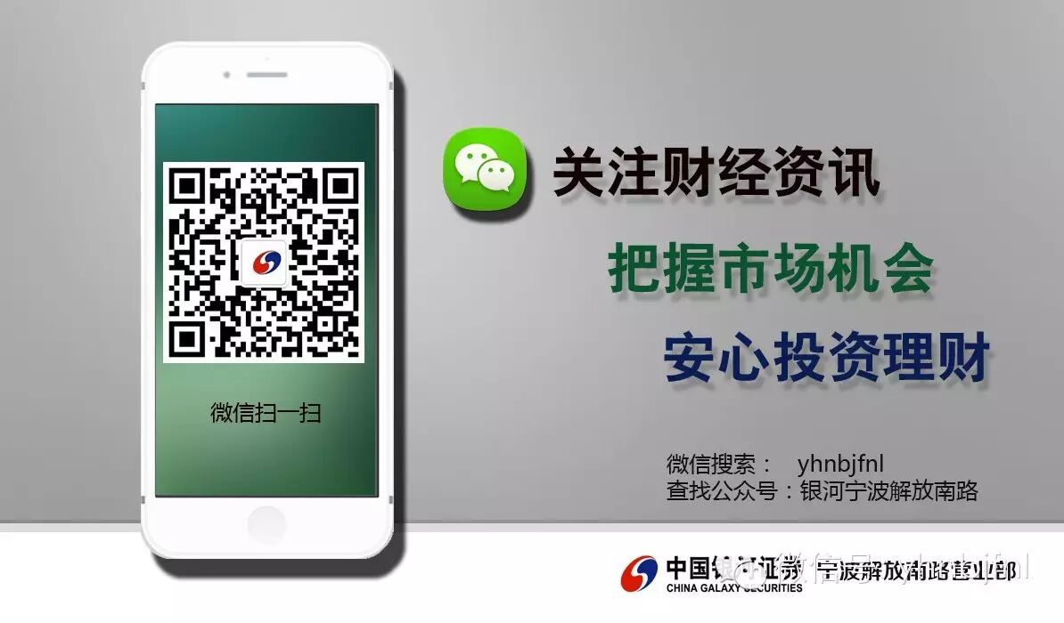 免责声明:本微信号提供的所有信息仅供参考,银河证券对该等信息的准确性、完整性或可靠性、及时性不作任何保证,并非作为买卖、认购证券或其它金融工具的邀请或保证。投资者据此操作,风险自担。投资有风险,入市需谨慎。