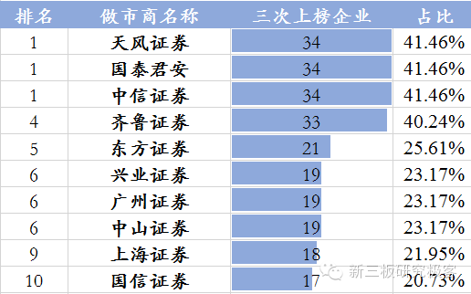 注:该占比是用做市商的三次上榜企业数量处于82;