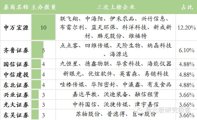 图表2.三次上榜企业的“伯乐”主办券商TOP10