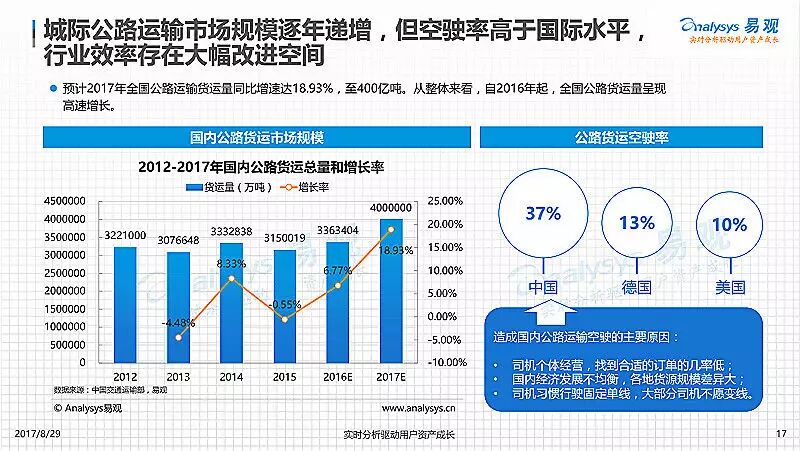 大市场与低效率行成的强烈反差加速了公路物流互联网平台的崛起。