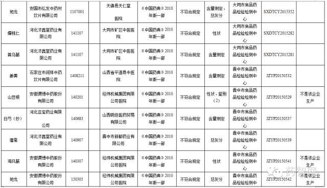 《公告》显示,本期不合格药品包括四川省宜宾五粮液集团宜宾制药有限责任公司的黄连上清丸、安徽益生源中药饮片科技有限公司的僵蚕等,不合格项目主要为溶散时限、性状、含量测定等。