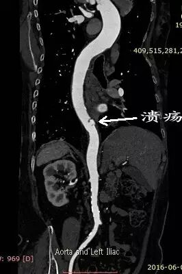 但术前的CTA评估又发现新的问题(图1、2),患者同时合并左侧锁骨下动脉的重度狭窄,狭窄>80%,平素血压多测量右上肢,并未发现,入院测量双上肢血压差别高达30mmHg!更困难的是,主动脉溃疡的破口位于胸10椎体部位,行覆膜支架腔内治疗,患者术后截瘫风险较大。患者病情危重,一旦主动脉破裂出血,死亡率极高!患者家属再次陷入恐慌,在此两难之际,王兵教授果断决策,手术要做,且决定同时介入治疗锁骨下动脉狭窄,因为锁骨下动脉狭窄的解除不仅能改善患者脑部及上肢供血,同时对脊髓供血起到良好的代偿作用,但即便如此,术前也与麻醉科胡强夫主任反复沟通,做好脑脊液穿刺引流准备,最大限度降低截瘫风险。