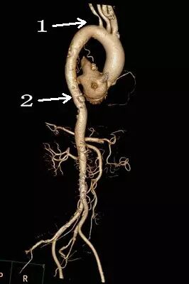 由于PAU患者年龄大,常伴有肺功能异常、肾功能不全或其他严重并发症者,为外科手术的高危患者,甚至失去治疗机会,且手术死亡率亦高达5%~20%,急诊手术死亡率更高。覆膜支架腔内修复术由于创伤小,安全性好、技术成功率高等优点,目前已成为PAU患者的首选治疗方案。